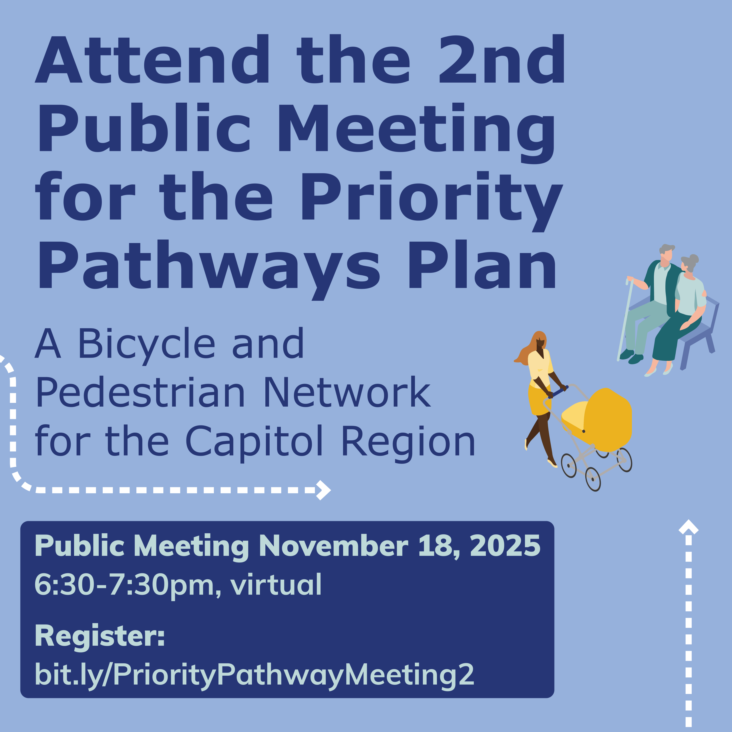 There will be a public meeting to share updates on the Capitol Region Transportation Safety Action Plan on Wednesday, November 19, 2025, from 6-7pm. This meeting will be held virtually via Zoom. Register in advance for this meeting: https://us02web.zoom.us/meeting/register/r1dTjhY-Rq-fGY3r4MXO0A After registering, you will receive a confirmation email containing information about joining the meeting.