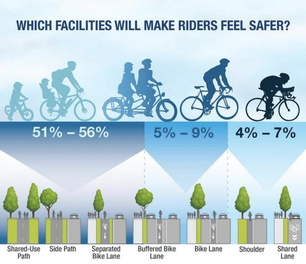 - meet bicycle and pedestrian Levels of Traffic Stress 1 (meaning welcoming to users of all ages and abilities)