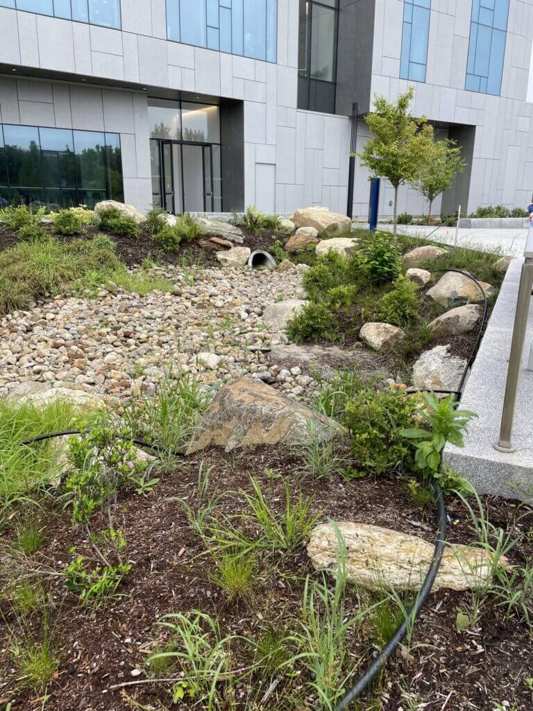 Green infrastructure and LID center on the basic premise of managing stormwater in ways that mimic natural systems. Green infrastructure might include deploying bioretention areas, rain gardens, constructed wetlands, dry detention basins, floodable fields, bioswales, infiltration trenches, porous/ pervious pavement, and underground infiltration systems.